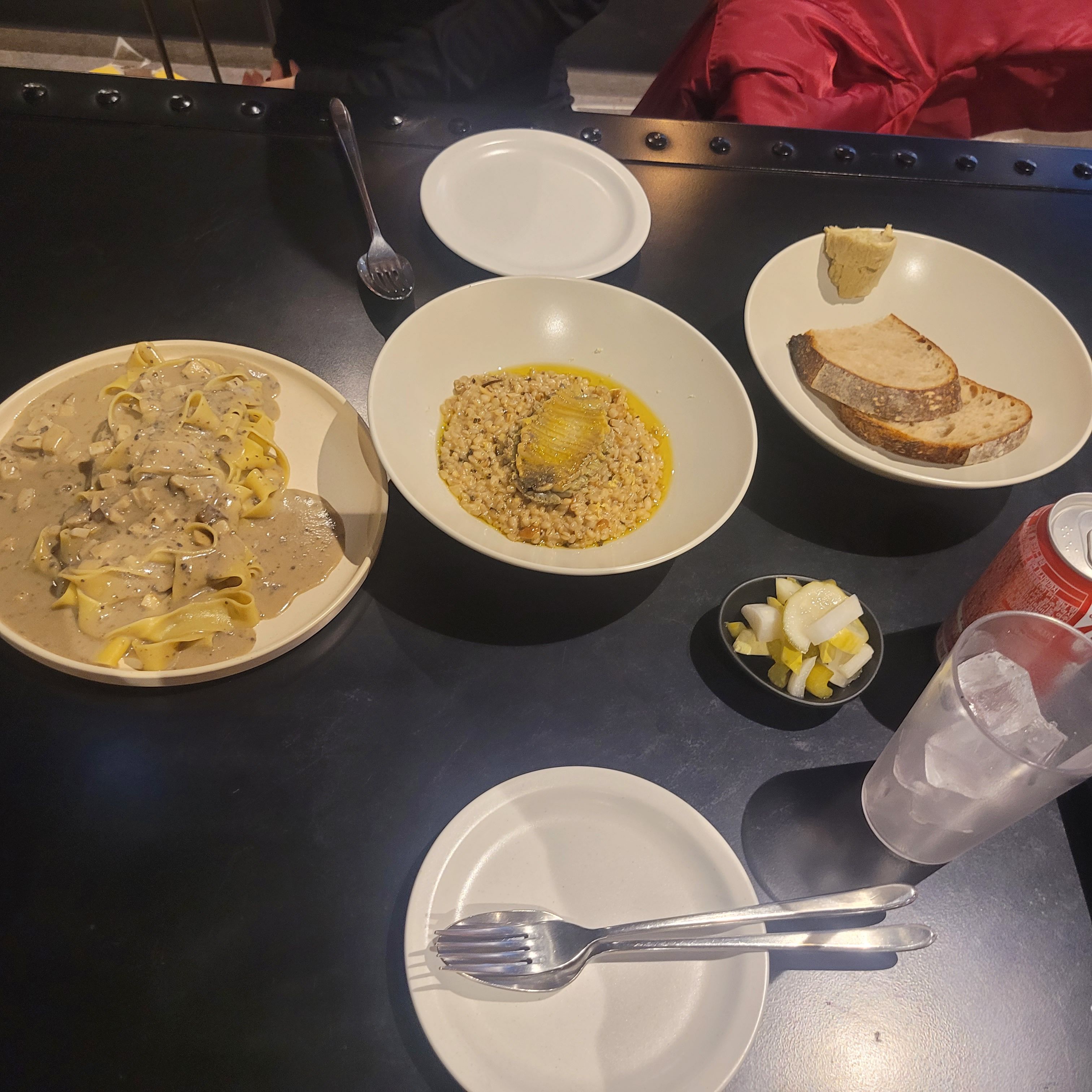 저희 부부는 보리전복 리조또, 트러플 크림 파스타, 시금치 버터에 찍어 먹는 빵? 같은 걸 주문했습니다.