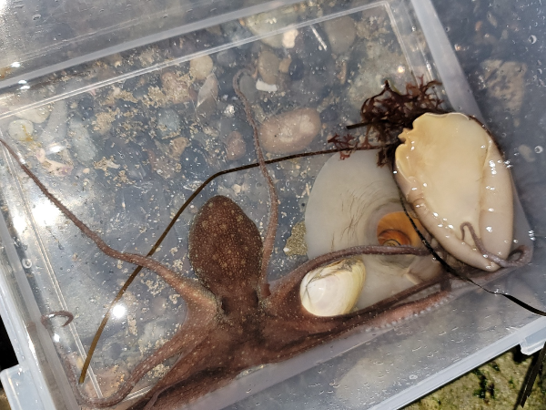 철수하면서 명주조개와 골뱅이는 방생하고 낙지만 한 마리 라면에 넣어 먹으려고 챙겨 왔습니다.