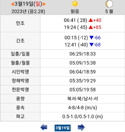 오늘 물때는 5 물입니다.
