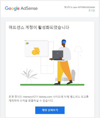 드디어 기다리던 구글 애드센스가 승인이 났습니다.