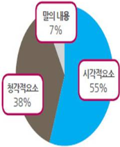 즉 보여지는 이미지적인 부분과 청각적인 부분이 첫인상의 많은 부분을 좌우한다는 겁니다.