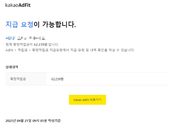 이제 애드핏은 출금을 할 수 있는 금액대가 되었네요..